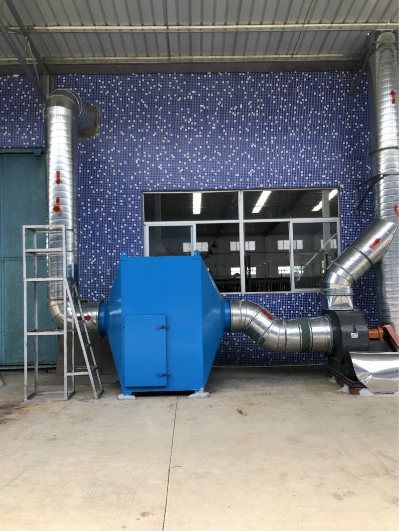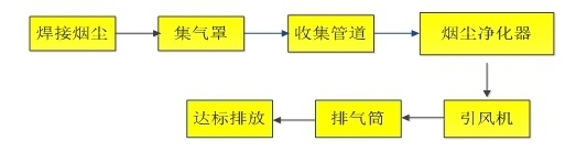广东省江门市某金属制品公司,根据生产需要,其焊接(氩弧焊)车间的16个焊接工位需增加焊接烟尘治理环保设施,其设计处理风量达到12000m3/h,因此,该生产线粉尘颗粒物总排放量为12000m3/h。我公司采用烟尘净化器+离心风机工艺进行处理,外排废气治理后达到广东省地方标准《大气污染物排放限值》(DB44/27-2001)第二时段颗粒物排放浓度限值要求;另外酸洗磷化工艺进行的过程中会产生酸雾,需要配备酸雾废气治理环保设施,设计风量为10000m3/h,因此,该酸洗磷化线有机废气总排放量为10000m3/h。我公司采用碱液喷淋塔+离心风机工艺进行处理。外排废气治理后达到广东省地方标准《家具制造行业挥发性有机化合物排放标准》(DB44/814-2010)第二时段排放标准。