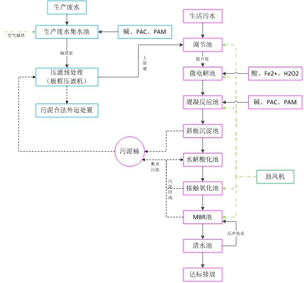 其水量约为生产废水4m3/d,生活污水26m3/d,运行时间20小时每天。