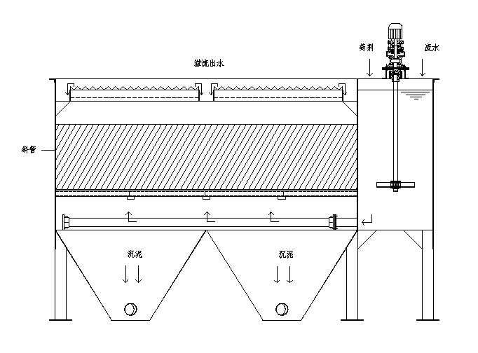 在平流式或竖流式沉淀池的沉淀区内利用倾斜的平行管或平行管道(有时可利用蜂窝填料)分割成一系列浅层沉淀层,被处理的和沉降的沉泥在各沉淀浅层中相互运动并分离。