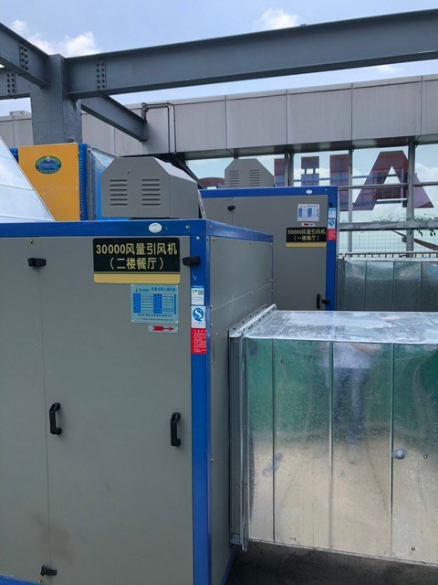2、 风量50000m3/h,功率1532W,除烟效率95~99%;油烟净化器系统必须达到2019年度实施的餐饮业大气污染物排放标准(DB11/1488-2018)即现有油烟净化按照三级净化标准:排口油烟排放标准:油烟(<1.0mg/m3 ),颗粒物排放(<5.0mg/m3),非甲烷总烃(VoCs)(<10.0mg/m3)